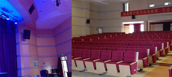 多功能厅,主要用于召开各类会议、教学培训、观看电影、举办中小型文艺演出等活动。而阶梯式多功能厅由于受环境布局影响,天花高度相对较低,观众席采用阶梯式布局,宜选用体积较小扬声器,四只6寸线阵音箱吊挂则是不错的选择。极悦娱乐音响厂家已帮助众多企事业单位、政府机关、学校等提供阶梯式多功能厅音响方案,建立完善的专业音响系统。