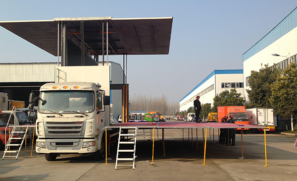 从半人工操作,到全液压全自动操作,到现在的一键式遥控操作,不断技术创新只为提拱更专业的演出舞台,省去传统搭台程序时间,创造更大的工作效益。厂家根据不同的演出需求,现有三种类型的演出车:全自动单面展开舞台演出车、全自动两面展开流动舞台车,全自动三面展开舞台演出车。详情请阅览《全自动流动舞台演出车有哪几种类型》