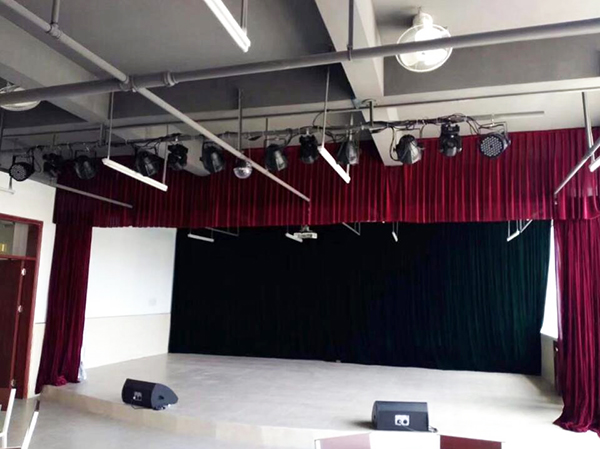 东莞黄冈中学距离极悦娱乐音响厂家不算远,校方也是听闻极悦娱乐厂家的实力就直接上门来访的,在专业工程师与校方领导的前期沟通下,工程师去到学校考察了场地,教工之家的娱乐室不算很大,有个小舞台,音响设备选用双十五寸音箱搭配CU系列舞台返听即可满足日常演出需求,再配上专业灯光设备,就能拥有一个炫彩动感的舞台效果。
