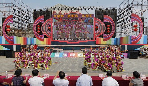 “Z国梦·韶韵风·东街汇”大型舞台文化演出在广东省韶关市举行,为期6天。市委书记蓝佛安、代市长骆蔚峰、市政协主席李飞等市四套班子领导出席活动。本次“Z国梦•韶韵风•东街汇”文化活动,主题为“相约文化韶关,欢聚魅力东街”,是趁着韶关市全面推进“文化名城”战略,构建公共文化服务体系和文化市场体系的东风,为了满足市民精神文化需求,提高城市品位,突显城市文化主题,打响韶关特色文化品牌而举办的一场文化盛会。