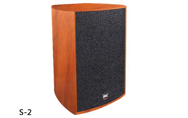 极悦娱乐娱乐KTV音响设备S-2是今年厂家新推出的单10寸两分频KTV音响设备,采用高端橙色木纹漆,外观高贵典雅,可采用多点吊挂安装,安装方便实用。KTV音响设备内涵也是相当丰富,8 Ω阻抗,额定功率420W,频率响应在45Hz-20kHz之间,灵敏度是96dB。S-2具有两大优点:1.特殊弧形箱体形状结构,配合单元椎体形状,有效消除箱体内的驻波,减少音染;2.高强度板材配合高强度冷压一次成形结构,使得声音更通透清晰,歌唱入唛轻松,自然流畅,中频过度平顺。