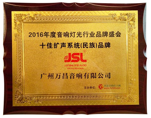 2016年度音响灯光行业品牌盛会十佳扩声系统(民族)品牌