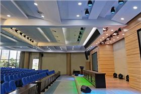 首页多功能厅音响 极悦娱乐K系列音箱应用于湖北汉江师范学院多功能报告厅