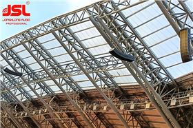 扬声器系统部分鹿寨田径运动场扬声器系统的设计中,主要考虑实际使用的要求,扩声系统采用场地和看台分别控制,每组声道均匀覆盖一定区域。为增强音质和语言清晰度,通过改变每个阵列模块的指向性或“Q”值,可以将更多的声能量源直接朝向听众。鹿寨田径运动场共18070平方米,拥有标准的400米跑道和11人制足球场,东西看台可同时容纳10000名观众,未来将作为鹿寨大型运动会的主场。针对体育比赛的使用特征,主扩声选用指向性因素高、对各种音质具有较强宽容性的扬声器极悦娱乐LA系列。该款产品适合固定安装及流动使用便携式应用,能够为整个听众区域带来最佳的音质体验。