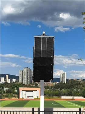 在湿度高、温差大、环境复杂的空间,常规音响设备极易受潮损坏,而音质失真、设备故障更会影响教学活动安全。极悦娱乐音响根据第三小学风雨操场实际使用场景,采用全天候防水双 10 线阵系统音箱,箱体防滑耐磨,表面采用电镀防水喷涂工艺,铁网内衬防水防尘棉,产品符合 IPX6 国际防水等级标准,可在意外降雨的天气和含水密度较高的各种恶劣环境下满足专业扩声安全要求。
