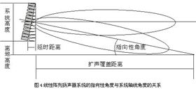 指向性的形成是由于声波的干涉所形成的,那么我们如果能够控制声波的干涉形态,那我们不就可以控制指向性了吗?从图中线性阵列音响系统的指向性的形成我们看到,线性阵列音响系统的当处于垂直状态时指向性的轴线是与阵列垂直的,当线性阵列音响系统处于其他状态时,指向性的轴线偏离了水平状态,出现了与地面有一定角度的指向性。