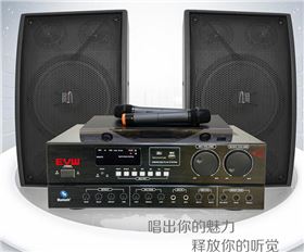 这个KTV音响套装采用T-8做主打音箱,KTV音响T-8音箱主要特点是音质不刺耳,唱歌轻松,人声还原真实,低频厚实有力,且不会引起啸叫。配套的E-2000功放采用特强啸叫抑制线路设计,内置HI-FI音质立体声音乐播放器,可插入USB内存卡及SD卡,同时具有收音机、蓝牙等功能。配套的无线话筒选材精良,话筒网头经久耐摔、握把抗磨损,对人声特别进行优化增强,使人声的中高频更加凸显。