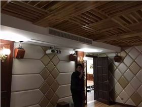 音箱位置确定好后,就要安装吊挂固定好,调整好角度,然后连接音箱线材,左中右音箱和环绕音箱一般都是卡线,有些是接线端子,分清正负红正黑负,把线卡紧;有源低音炮是用莲花头的信号线直接连到功放上。
