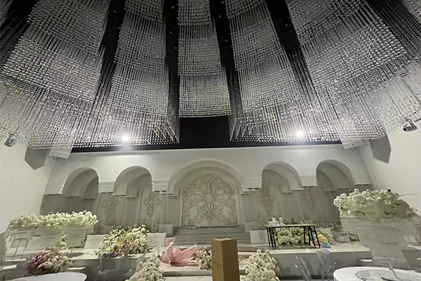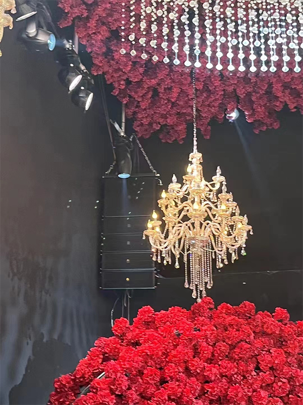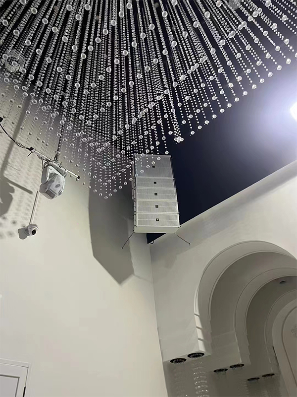 极悦娱乐音响根据场地和宴会厅的装饰风格和主题,采用极悦娱乐AS系列线阵音箱。合理布置音响设备的位置和角度,调节混响时间和吸音材料的布置以获得最佳的音效效果。
