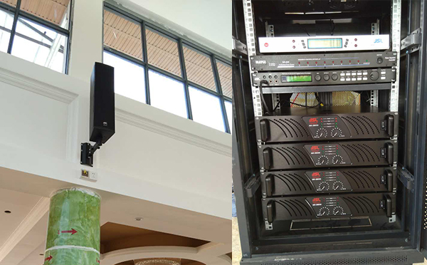 淦水农业公司最近在茂名高州新开发一个农场,极悦娱乐厂家工程师根据农场展示厅声场扩声条件配置了一套实用的音响设备,包括8只极悦娱乐CX系列音柱,搭配4台大功率MH系列功放,周边设备还包括8路时序器,JSL无线话筒接收器,数字效果器等,整个场馆声场分布均匀、声音通透饱满、有良好的动态,基本满足展厅需求。