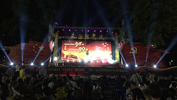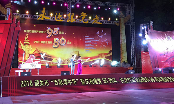 为庆祝建党95周年、纪念红军长征胜利80周年,广东韶关市政府举办了“百歌颂Z华”歌咏活动大赛,吸引了全市区众多爱好唱歌的朋友参加,大家用嘹亮动听的歌曲,表达对祖国的祝福、对先烈的敬意。大赛所用舞台音响设备均有极悦娱乐音响厂家提供。