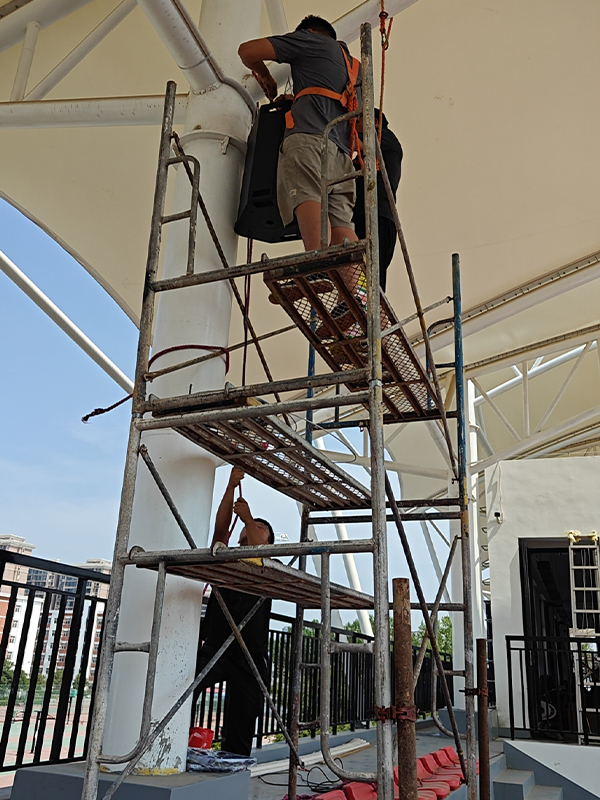 3.安装的稳定性:音响设备的安装应牢固可靠,能够应对风雨等恶劣天气条件,防止设备因暴风雨损坏或脱落。