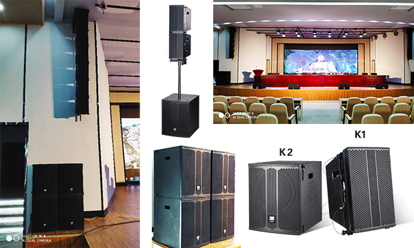 由于学校多功能厅结构的特殊性,为了声场更均匀,主辅音箱采用高品质、高性能K系列黑金刚K1K2。K1全频音箱,中频通透,赋有穿透力,人声表现自然,中高频清晰细腻,人声和音乐表现都获得优良重视。K2超低频箱体采用了12寸橡胶边玻纤盆双磁钢磁路设计,使低音单元性能大大提高,低频效果赋有弹性和力度,包围感强。 K系列箱体都集成了D类数字功放,24bt-48kHz DSP处理器。 带有4种音效模式,可根据实际应用自由选择,功放板具备4种保护机制(软启动,直流保护,短路保护,过热保护),让K系列产品的使用稳定保障。