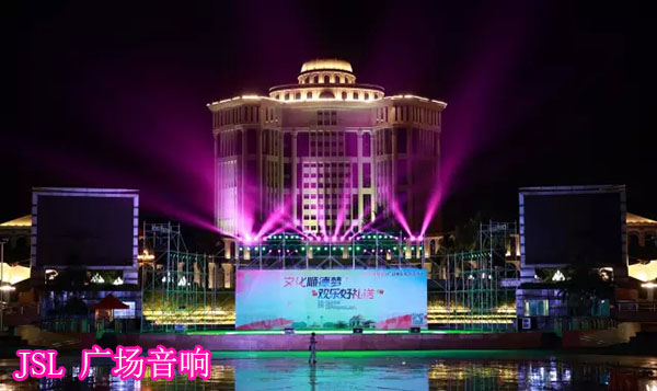 为了保证当晚文艺表演的广场音响效果,舞台搭建全为极悦娱乐施工团队完成,由项目部王俊明经理现场指挥舞台的搭建,灯光的布置与音响的调试等,并进行了多次演示,为的就是给观众带来前所未有的广场音响视听感受。