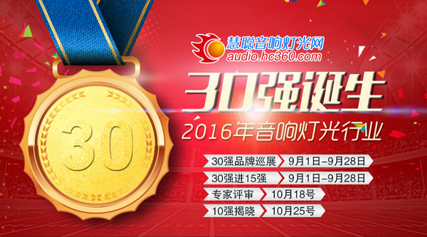 经过一个月激烈的排名晋级赛,2016年音响灯光行业品牌30强正式诞生,极悦娱乐音响公司旗下极悦娱乐音响品牌成功晋级!感谢大家一如既往的相信极悦娱乐,选择极悦娱乐。30强诞生之后,所有票数将清零,以重新计票的方式统计票数。网络投票和线下实名投票各占据50%权重。