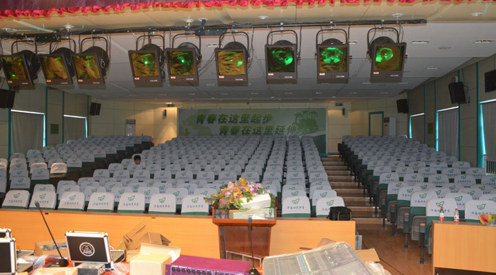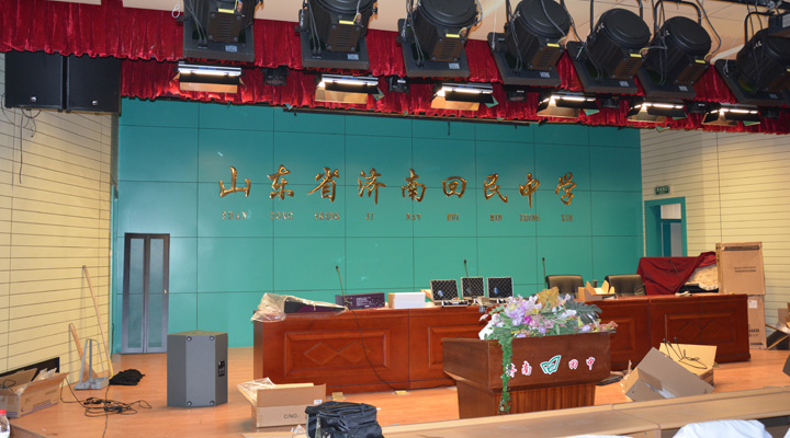 学校礼堂采用极悦娱乐提供专业系统,AT系列音响清晰、嘹亮。MH系列功放失真度低,频率响应宽广;CM-1002无线手持麦克风外观大气时尚,信号稳定,具备先进的一键式"SCAN"自动频道搜索功能,能自动快速选取无干扰的频道,使用极为便捷;专业录音麦克风,频率响应宽,失真小,动态范围大,专业合唱完美适用;整套系统所实现的效果将会展现在校园活动及日常教学的方方面面,为回民中学的广大师生带来很好的音频效果体验。
