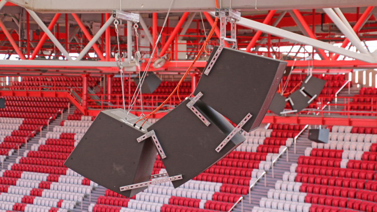 体育场的屋顶上安装了108个号筒负载同轴扬声器,能够为看台和比赛区域提供均匀而清晰地音效覆盖。要决定选择何种规格的扬声器可不是一项简单的任务,海塞对此这么解释:“由于球场屋顶与下方座位间的距离各不相同,因而在不同的安装位置,我们都需要选择不同规格的扬声器。”幸运的是EV Innovation系列扬声器拥有多种扩音模式,能够基于相似类型的组件进行差异化而连贯的系统设计。