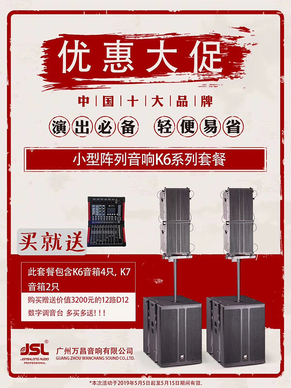 “音您而来 响您所想”极悦娱乐音响展会期间隆重推出小型阵列音响优惠大促活动,活动时间从2019年5月5日起至年5月15日结束,活动期间,优惠多多,惊喜万分,欢迎新老用户咨询订购。