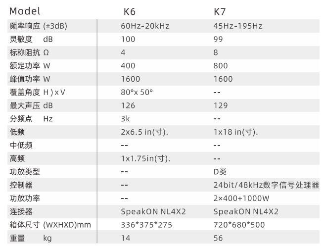 K6K7在K1K2的基础上再次升级,不仅内置400W功率放大器,顶部也升级成2个高性能钕磁6.5”全频单元,因此可在高水平上提供特别深刻的动态再现,K6K7具有显着增加的低中播放,处于恒定水平,并且具有高的分散性。