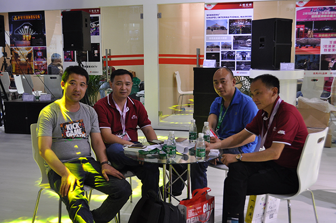 这次展会中,我们公司以线阵音箱、有源音箱、KTV音响为主打,吸引众多参展商前来了解产品和商洽业务;同时也吸引了不少国外的客户前来洽谈,有利于我司把握全球市场脉搏,与国外客户一起与时俱进。在现场,专业调音师调出客户提出的各种音质音效,并得到客户的赞赏。