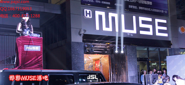 著名连锁品牌MUSE,它以独具一格的装修、时尚的音乐、浓郁的氛围闻名全国,受到广大消费者的追捧。时尚,品质,娱乐,高尚夜店—邯郸MUSE酒吧于2013年5月1日粉墨登场。