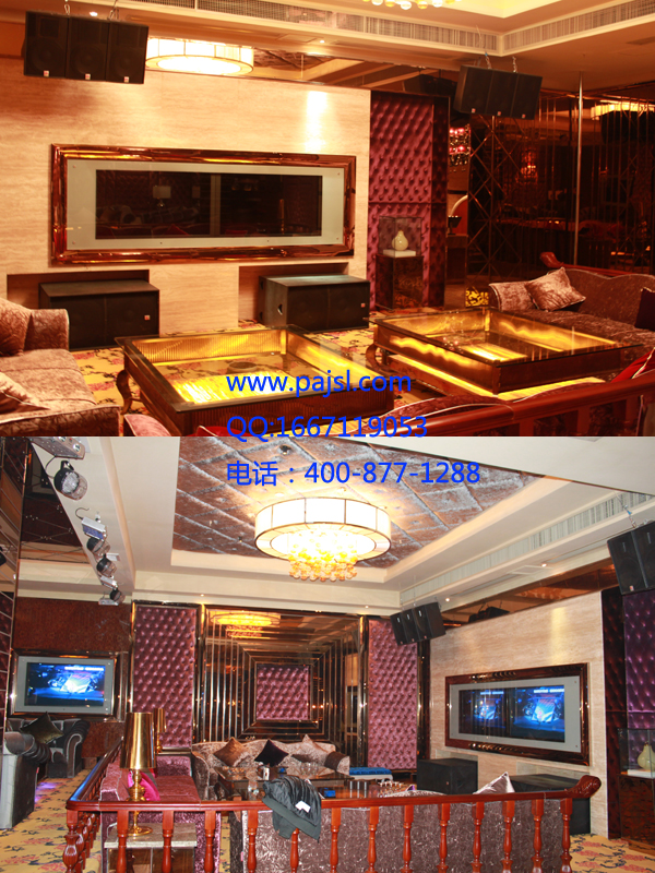 整个设计过程均由专业室内设计公司与我们共同去进行结合设计,在双方多次磨合后最终酝酿出专业与艺术的结晶。音响方面,我们采用AQ-12二分频全频音箱,AQ-12是JSL品牌中主打高端KTV音响的专用系列,在室内中、小型主扩声系统和扩声系统的辅助补声方面都有出色的表现。高音单元采用1.75"特殊高分子振膜驱动器,高频通透明亮,与之配合的是一只 3"音圈的12"优质低音单元,具有丰富的力度和弹性。内置采用进口元件的精密分频音质设计注重中频部分的饱和度、和亲和力、以达到喉感表现力,高声压的中段频率,使无线话筒演唱轻松自如!