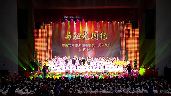 今年年初是卓雅外语学校成立一周年,在学校大礼堂举行一周年庆典晚会,会场上由极悦娱乐专业音响提供舞台音响设备,加上表演者倾情演绎,精彩的演出赢得了现场观众阵阵响声。在新一年的新起点上,全校师生用欢歌热舞迎接新一年的到来,用艺术的形式演绎了该校的办学特色和素质教育的最新成果。