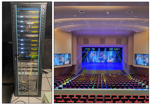 在安装调试阶段,极悦娱乐专业音响安装团队借助先进音频测试软件,对剧院内各个位置进行细致声音测试,精确调整音箱安装角度和位置,确保整个剧院的每一处角落都能被稳定、清晰的声音所覆盖,使用了极悦娱乐LA系列主扩声系统 ,无论观众坐在前排还是后排,都能享受到同样震撼的音效。同时,搭配多台带显示数字功放,拥有强大功率储备和极低失真率,为音箱提供稳定而强劲的动力,即便是大动态音乐段落也能游刃有余,保证声音的清晰度和饱满度。