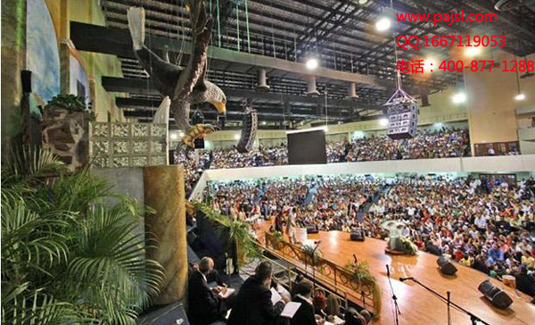 巴拿马国家教堂可容纳数万人,大型线阵音箱悬挂在教堂的大厅中心上空,位置十分醒目,在教堂舞台周围辅以小型线阵音箱,舞台两侧再配上超重箱WS218,使教堂的每个角落音质效果达到很好。