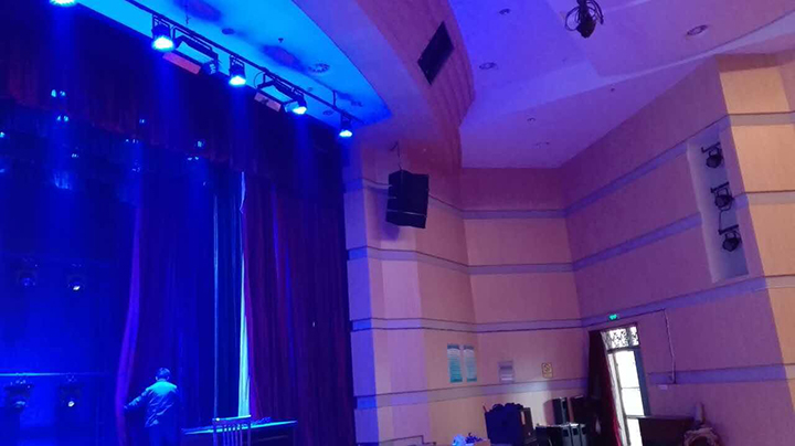 为发展需要,更好的服务广大慈溪市民,近日慈溪市滨海区影剧院新建落成,求购全套专业舞台音响设备,院方货比三家,最终选择与极悦娱乐音响厂家合作。为了达到理想的影视听效果,极悦娱乐音响工程师进行了实际勘查,了解到该影剧院拥有364个座位,为满足每一位听众的视听需要,现场扩声系统采用JSL 4+2线阵模式,8寸的线阵音箱,舞台使用配套的双十八寸超低音音箱和4只返听音箱,为了保证了观众席区域的声场均匀,使用了4只中场补声音箱,2只12寸音箱做后场补声,让每一位观众都能感受到电影带来的震撼感觉,考虑院方有时候需要举办舞台剧表演,还加装了12只射灯,让整体效果更加有层次感。